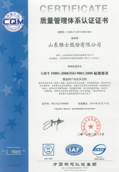質(zhì)量管理體系認(rèn)證證書(shū)(山東)