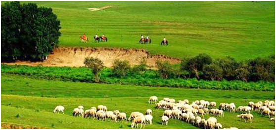 “敕勒川,陰山下。天似穹廬,籠蓋四野。天蒼蒼,野茫茫。風吹草低見牛羊。”