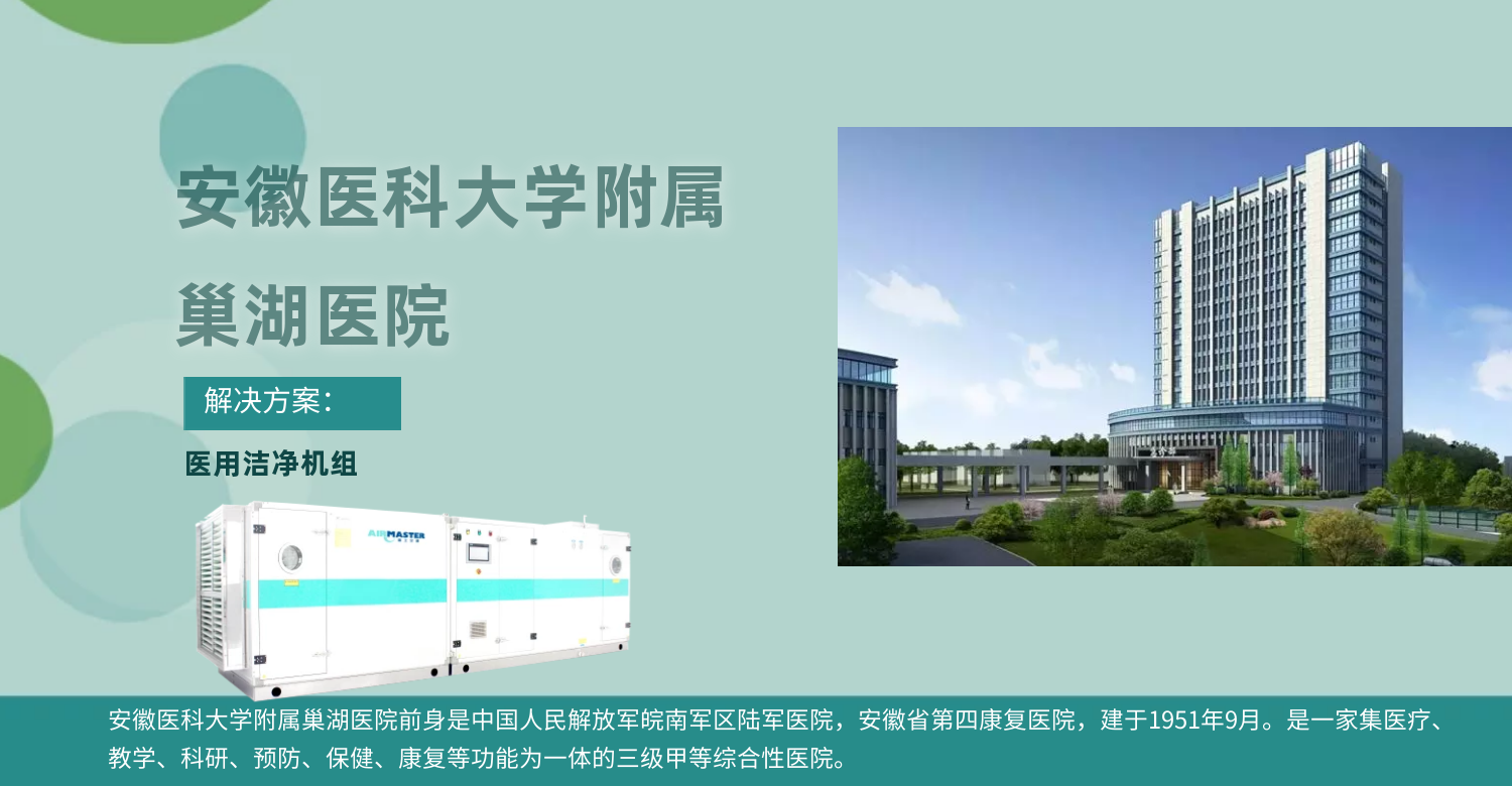 安徽醫科大學附屬巢湖醫院前身是中國人民解放軍皖南軍區陸軍醫院,安徽省第四康復醫院,建于1951年9月。是一家集醫療、教學、科研、預防、保健、康復等功能為一體的三級甲等綜合性醫院。